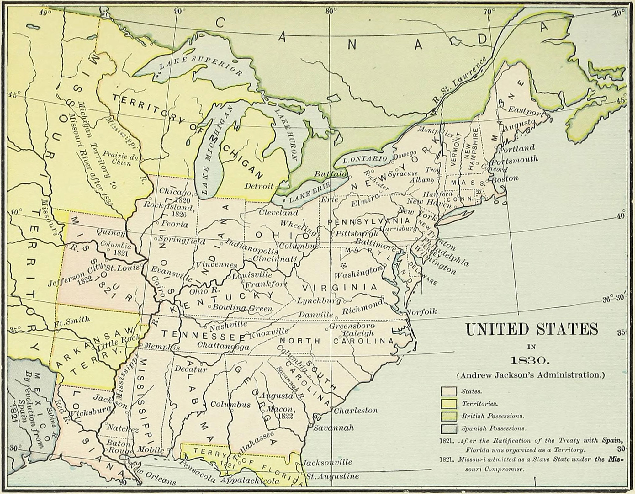 Source: Townsend Mac Coun, An Historical Geography of the United States, New York-Boston-Chicago, Silver, Burdett & Co., 1901.